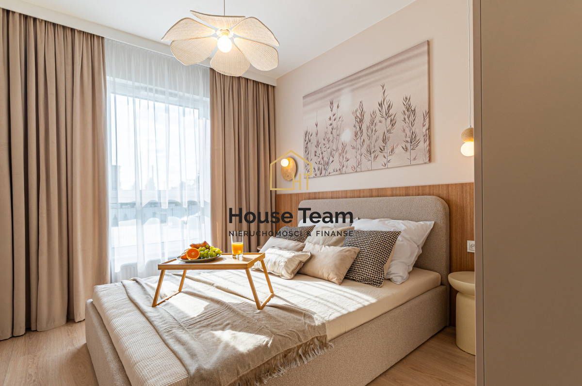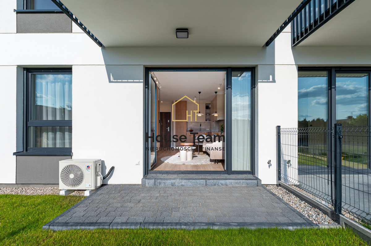House Team Real Estate & Finance presents for sale an elegant two-room apartment with a private small garden, totaling 38 m², located on the ground floor of a modern building with an elevator in the AVIA development in the Szwederowo district of Bydgoszcz.