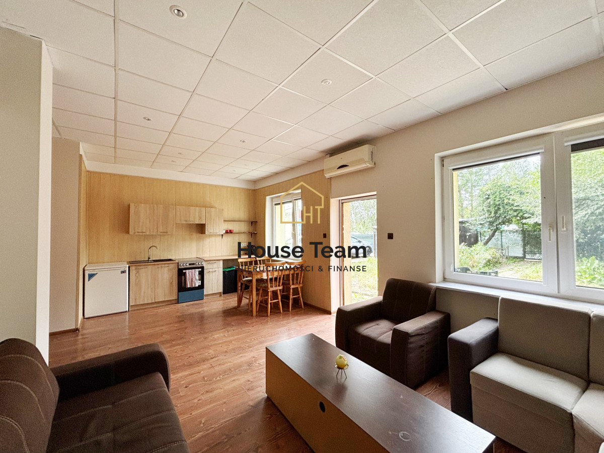 Budynek gospodarczy/domek dla gości- wybudowany w latach 90 tych wyremontowany kilka lat temu, o powierzchni zabudowy 57,15 m², parterowy, murowany, z płaskim dachem. Doskonały pod własną działalność gospodarczą, taką jak salon fryzjerski, salon kosmetyczny, usługi biurowe czy księgowe. Składa się z pokoju z aneksem kuchennym, łazienki, sypialni oraz pomieszczenia gospodarczego.