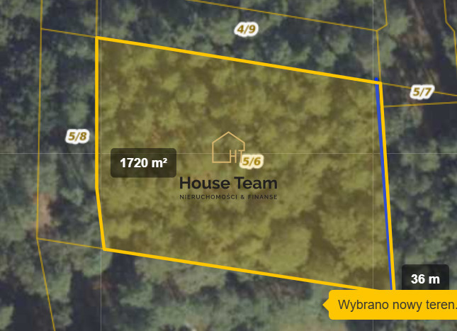 - numer działki - 5/6 - powierzchnia 1721 m2
