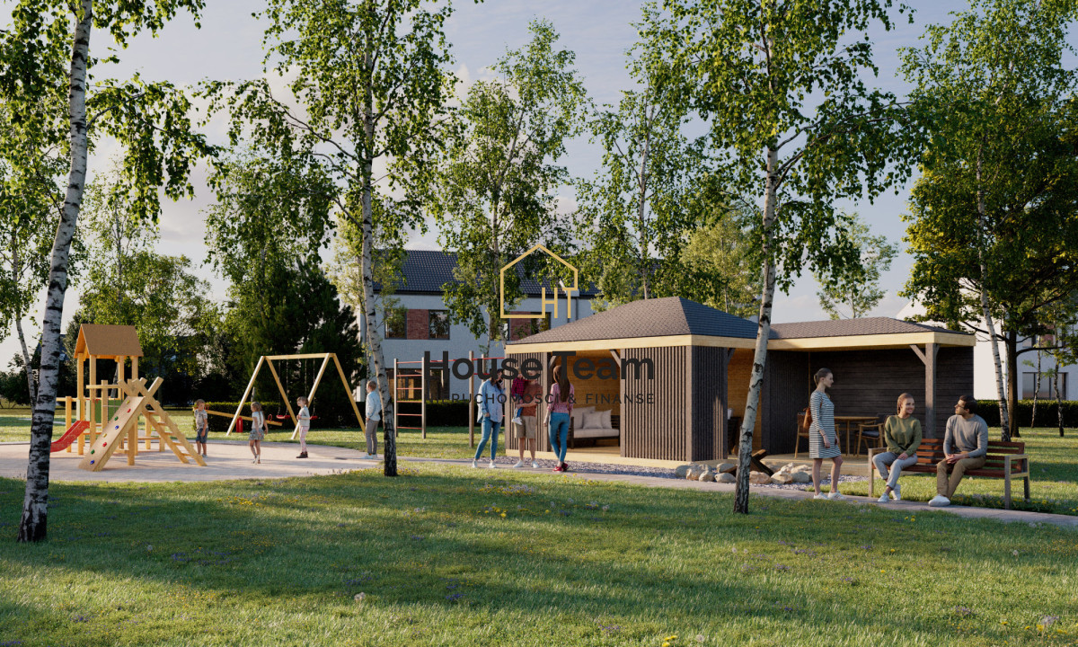 Nieruchomość znajduje się na osiedlu nowoczesnych domów, z dostępem do wkrótce zaaranżowanego prywatnego parku oraz placu zabaw dla dzieci (aż 3000 m2), co wyróżnia tą ofertę.